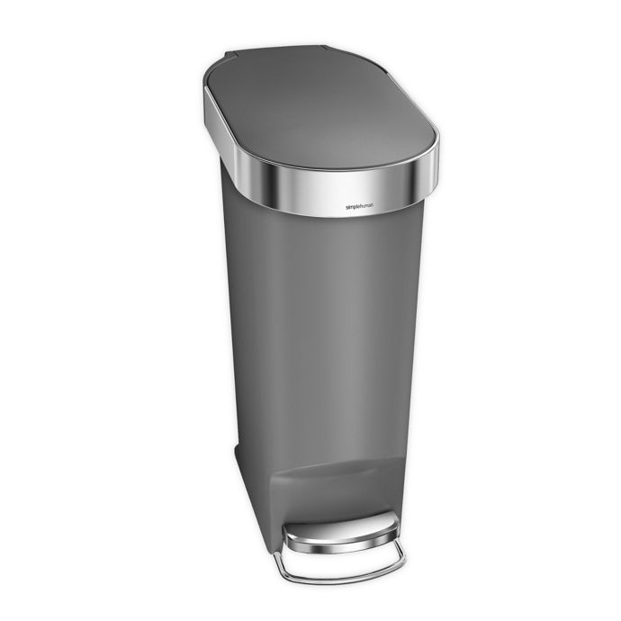 Simplehuman s stainless steel rectangular step trash can features simplehuman s stainless steel rectangular step trash can features an innovative liner pocket that stores and dispenses liners from inside the can for a faster liner change.